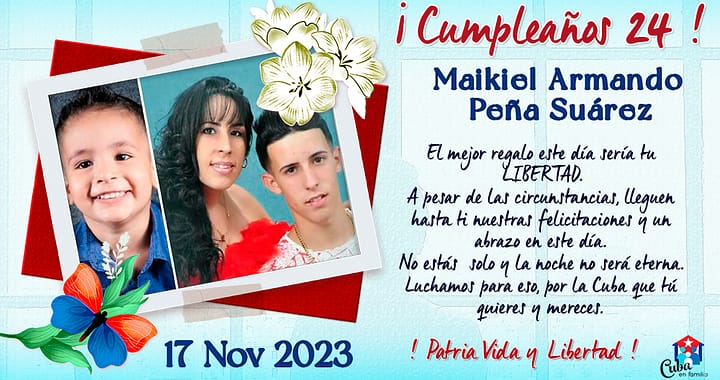 Este 17 de noviembre está cumpliendo 24 años Maikiel Armando Peña Suárez, preso político, encarcelado por ejercer su derecho cívico participando en las históricas protestas populares del 11 de julio del 2021 en su pueblo natal, Vegas, provincia Mayabeque.